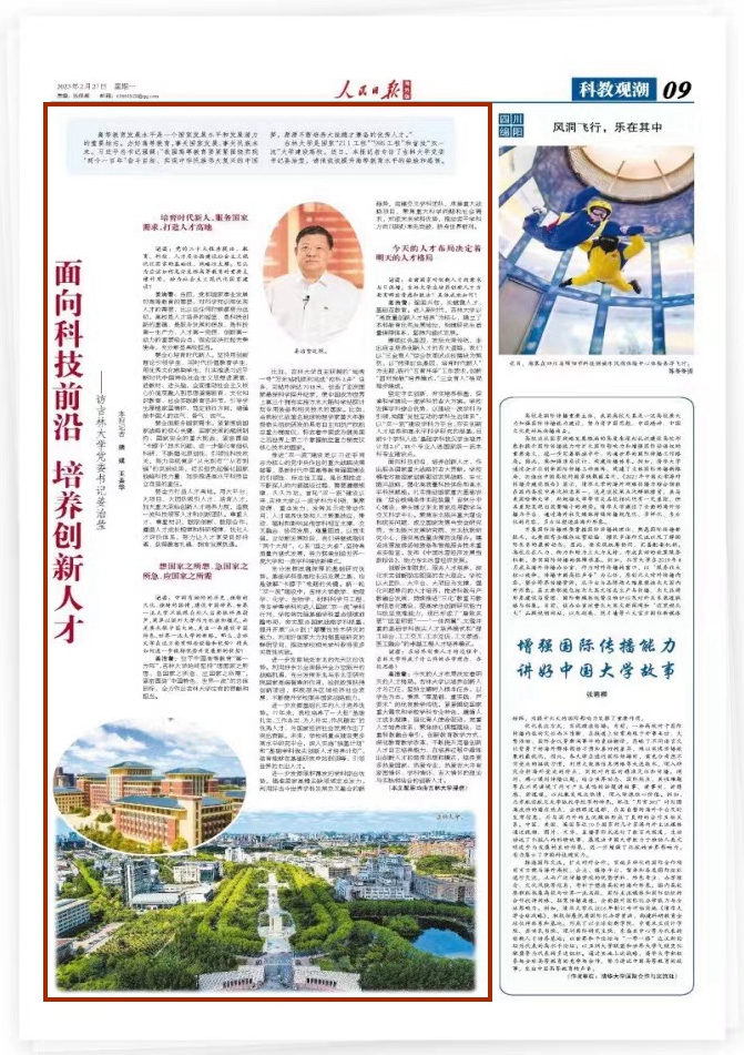 面向科技前沿,培养创新人才,作出服务国家重大战略的吉大贡献。学校精准对接国家创新驱动发展战略、东北振兴战略,强化高质量科技供给和高水平科技赋能。扎实推动国家重大基础设施“综合极端条件实验装置”吉林分中心建设,牵头建立东北首家应用数学与交叉科学中心。聚焦东北振兴重大理论和现实问题,成立国家发展与安全研究院、东北振兴发展研究院、东北抗联研究中心,提供高质量决策咨询服务。建设冰雪旅游场地装备和智能服务技术文化和旅游部重点实验室,发布《中国冰雪经济发展指数报告》,助力东北冰雪经济发展。