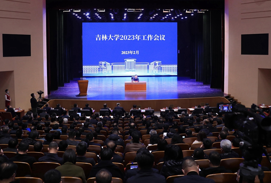 【文/记者 张宏伟 摄/记者 方卫东】2月28日,吉林大学2023年工作会议在鼎新大讲堂召开,会议旨在全面贯彻落实党的二十大精神,系统总结过去一年工作,安排部署2023年重点工作,动员全校上下以“拼”的精神、“实”的干劲、“敢”的担当,奋力完成全年目标任务,努力实现新时代新征程的良好开局。校党委书记姜治莹作讲话,校长张希作学校工作报告。会议由党委常务副书记冯正玉主持。
