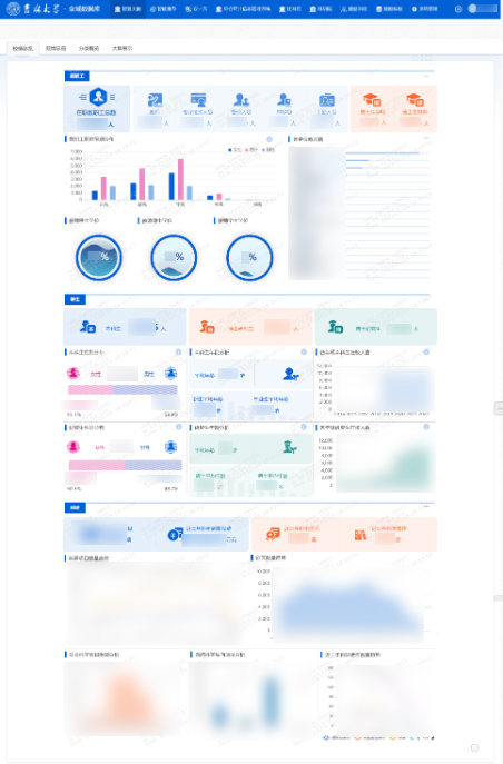 为更好地发挥数据资产价值,大数据和网络管理中心以数据为核心、以业务为驱动、以算法为支撑、以AI为辅助,构建了 “智慧大脑”“智能推荐”数据分析基础平台,将数据资产与数据治理成效应用到学校的管理和服务实践中。平台提供集统计、查询、分析于一身的通用报表,配合丰富的展现及交互能力,通过可视化分析对学校基础设施、教工、学生、科研等大量数据进行管理、统计,实现了“用图形让数据说话”。根据不同的功能需求,平台对学校的公共数据抽取业务模型,独立或组合应用于多种业务场景,使数据分析更直观、更全面、更准确,实现数据透明化,为校院两级决策提供数据支撑。